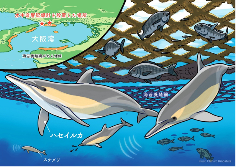 これまで主に取り組んできたのが、受動的音響モニタリングを用いた研究です。スナメリは超音波のクリック音を発して環境を認知するため、水中マイクでその音を記録することで、目視に頼らずに分布や行動を調べることができます。この手法により、スナメリがいつ、どの海域を利用しているのか、また船舶航行などの人間活動にどのように反応しているのかを明らかにしてきました。